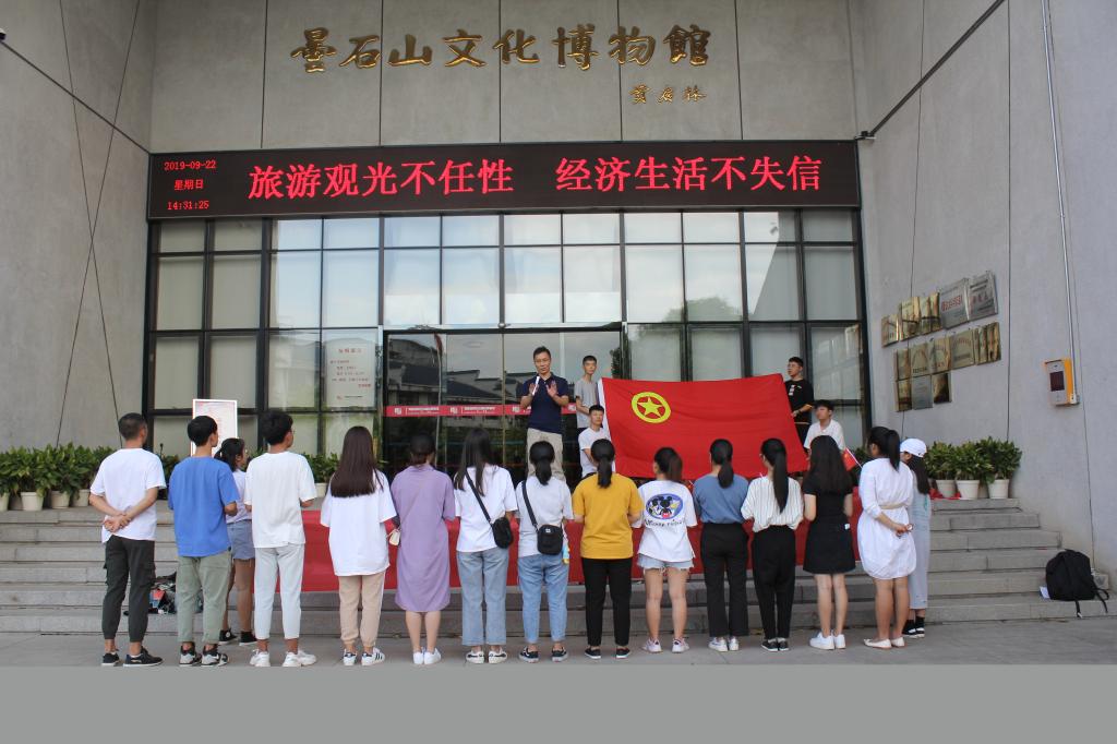 為隆重慶祝中華人民共和國成立70周年,大力唱響禮贊新中國、奮進新時代的青春主旋律,2019922日,醫(yī)學技術(shù)系在團總支書記曾慶才的帶領下,組織18級學生干部及各班級學生干部赴曇石山文化博物館開展“我與祖國共奮進——國旗下的演講”特別團日活動。