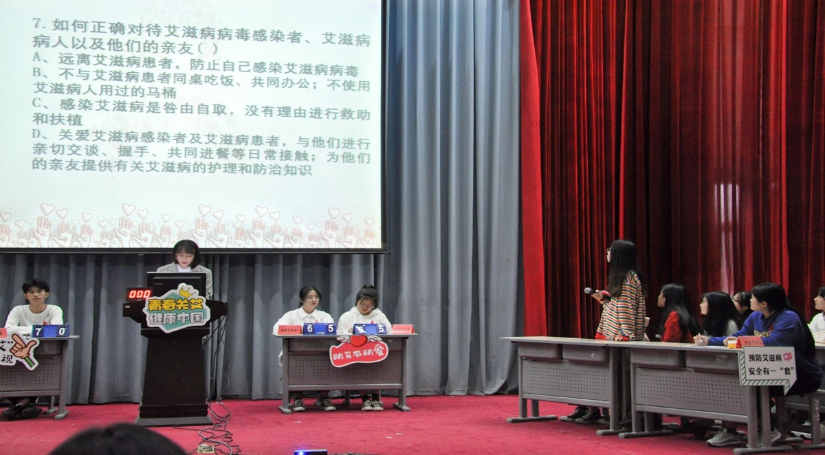 防治艾滋人人參與,和諧生活家家受益。我系于1219日在學術廳舉行“青春關艾·健康中國”主題宣傳活動。為了這次防艾知識競賽,選手們經過重重困難,終于進入了最后的總決賽,他們來自各個系的選手們并且在比賽過程中積極發(fā)言,回答問題。在搶答環(huán)節(jié)中,五組選手們也都爭分奪秒的按下手中的按鈕來搶答,過程十分精彩。在觀眾互動環(huán)節(jié)中,臺下的同學也是對答如流,在主觀題部分,每組選手選完題數(shù)依舊題目回答的正確率也是極高,專家大部分也都給予了高分,可見參賽者們對防艾知識熟悉度極高。一點一滴關愛艾滋群體,一言一行彰顯社會文明。防艾知識競賽用特殊的方式將知識內容源源不斷的傳遞下去,用選手們在臺上通過回答問題,從而讓大家普及防艾知識,從而來預防艾滋。其實艾滋并不可怕,我相信它總有被征服的一天,讓我們共同努力,真愛生命,防治艾滋,因為艾,所以愛,讓飄動的紅絲帶,連接著關愛,努力為戰(zhàn)勝艾滋而奮斗。