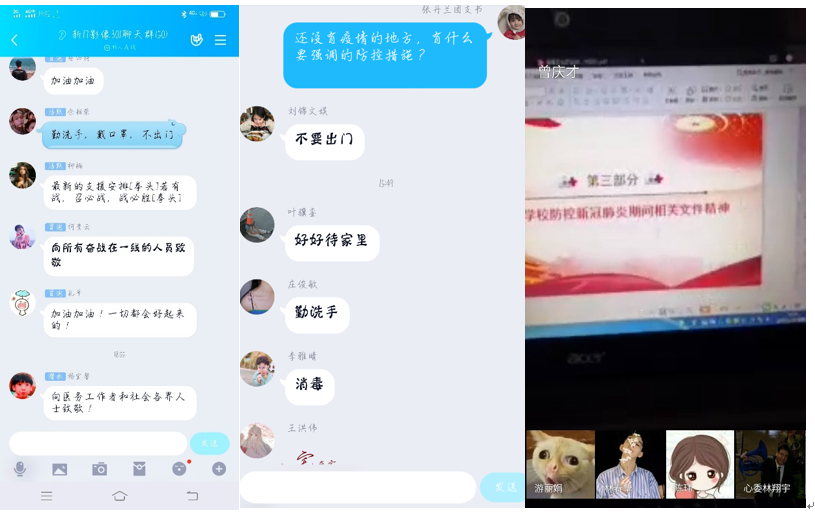 輔導員龍梅梅老師在團日活動中針對疫情做了分析,提醒同學們在家學習,減少外出,提高警惕,保護好自己的安全。同學們手寫祝福語,用優(yōu)美的文字表達對祖國對武漢的祝福!羅沁琳同學說:“這次團日雖然和之前的開展方式有所不同,但是意義非凡。輔導員在班會上為我們科普了新型冠狀病毒和防范它的知識以及現(xiàn)在的疫情情況,還關(guān)注我們的學習情況,鼓勵大家在疫情期間也要努力學習。我們也用手寫字,表達了對武漢同胞們的祝福,相信只要我們堅定信心就一定能夠打贏這場防疫攻堅戰(zhàn)!