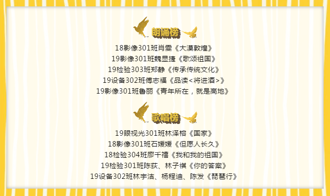 此次活動采取線上的朗誦和歌唱兩種形式的作品參賽。在活動過程中,全系同學(xué)積極參與。在作品中,每一位同學(xué)都認(rèn)真對待,飽含熱情,表現(xiàn)出對中華經(jīng)典的熱忱。同時,也感受到同學(xué)們聲音里凝聚著獨(dú)具特色的語言文字、精彩紛呈的文學(xué)藝術(shù)以及中華傳統(tǒng)文化!經(jīng)過系部各方面的綜合評選和激烈的角逐后,最終朗誦和歌唱分別擇優(yōu)選出5個優(yōu)秀作品。