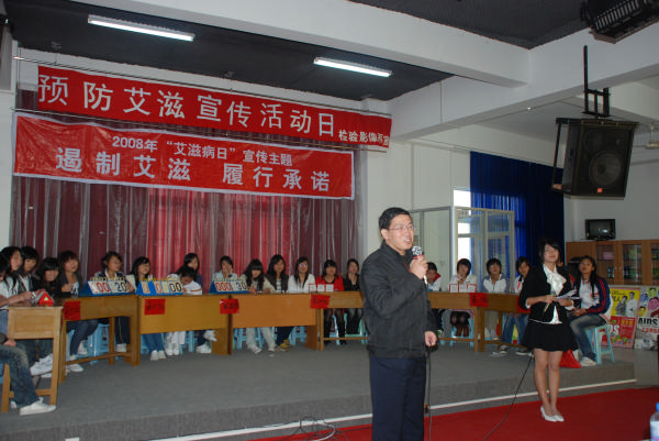 檢驗影像系文藝部以主題“遏制艾滋,履行承諾”,于2008年12月2日下午2點,在學生活動中心三樓舉辦了一場艾滋病知識競答活動。參加此次活動的嘉賓有:來自閩侯防疫站的工作人員和本系的老師。參賽選手分別由:護理系、藥學系、臨床醫(yī)學系、檢驗影像系組成8個小組。