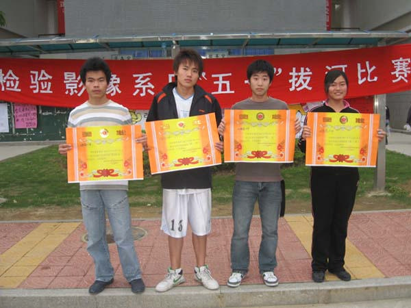 檢驗影像系于2007年4月26日下午在教學(xué)樓205舉行了“魅力男生、女生”預(yù)選賽,本次活動有10余名選手參加,通過“個性才藝,你我爭風(fēng)”、綜合知識問答、形象展示和“尋找同伴,同舟共濟”4輪的比賽,最終評選出一、二、三等獎、鼓勵獎和最佳人氣獎。