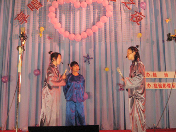 檢驗(yàn)影像系于2007年5月9日晚6:00在院學(xué)術(shù)廳舉辦了“享唱之約綜藝之夜”文藝晚會(huì)。晚會(huì)以藝術(shù)節(jié)的魅力組合小組唱為主線,穿插了小品、舞蹈、話劇、小提琴獨(dú)奏、歌曲串燒等節(jié)目,使整場(chǎng)晚會(huì)節(jié)目精彩紛呈,形式多樣,在晚會(huì)中的游戲——最想聽你唱和爭(zhēng)分奪秒節(jié)目中,融入了場(chǎng)外觀眾的互動(dòng)參與,把整場(chǎng)晚會(huì)推向高潮。最后,晚會(huì)在閉幕曲《年輕的戰(zhàn)場(chǎng)》中落下了帷幕。