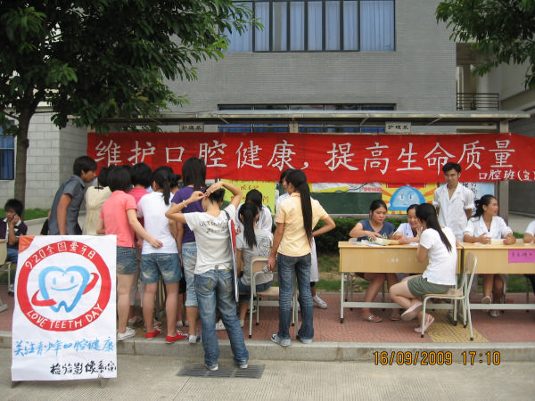 為迎接“9-20 國際愛牙日”,檢驗影像系于2009年9月17日在學院食堂前的宣傳欄處舉辦“維護口腔健康,提高生命質(zhì)量”義務宣傳活動??谇粚I(yè)教師馬清璇、邵旭媛、魏小平、楊坦以及06口腔501班、07口腔501班學生參加本次活動。