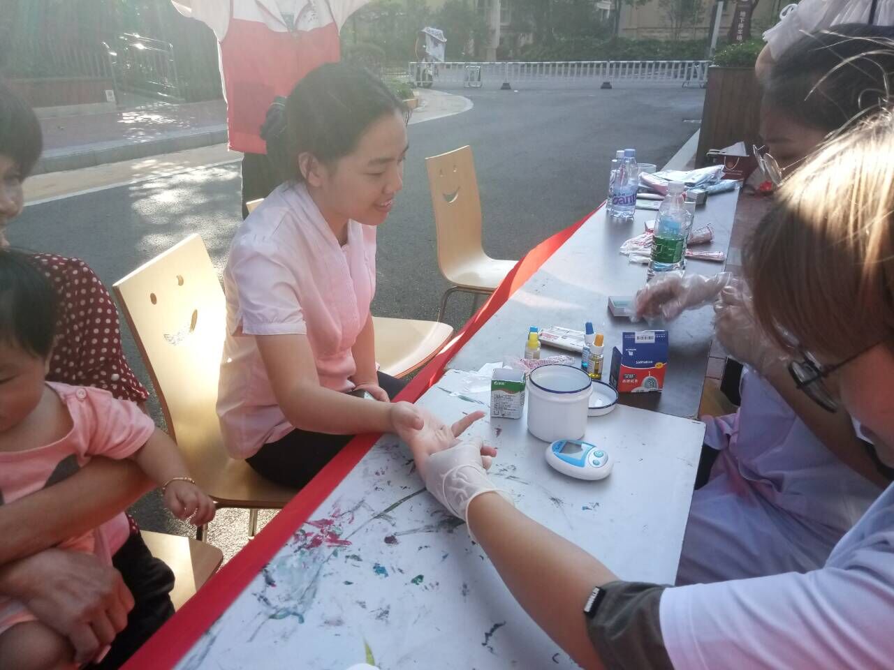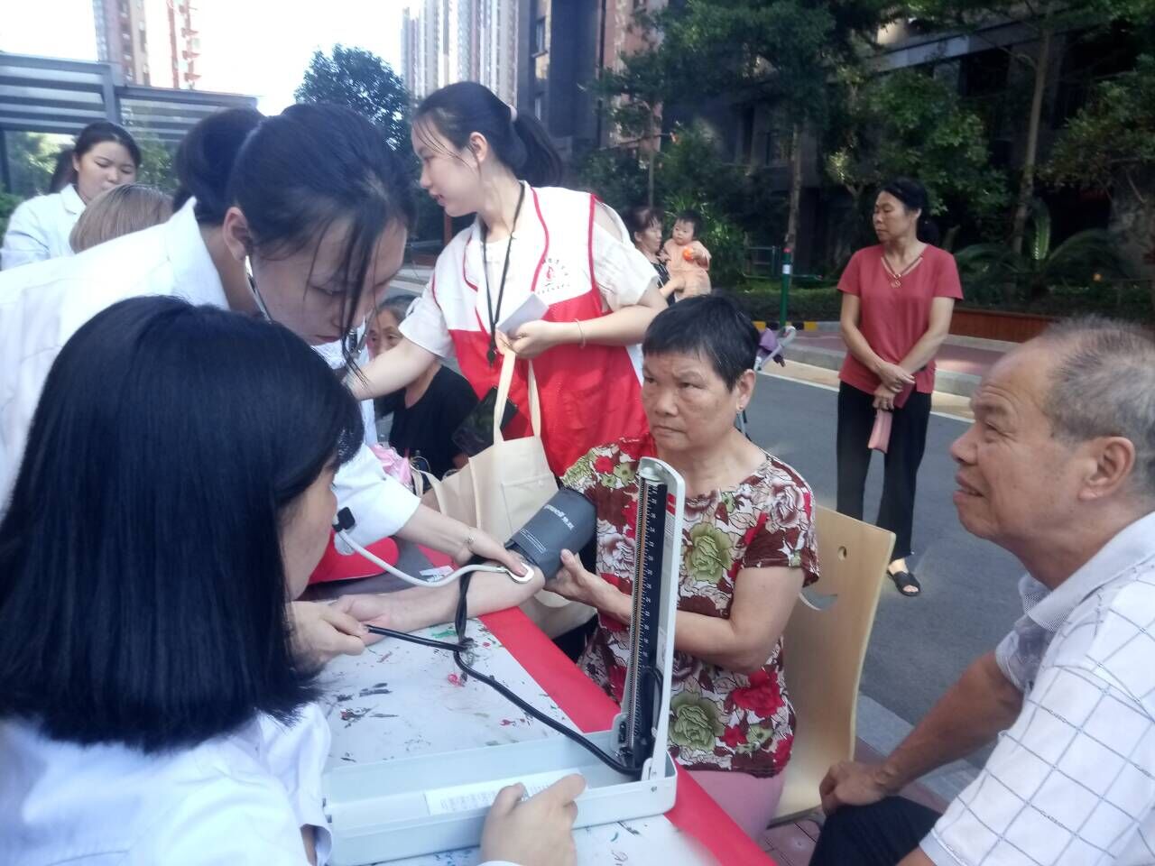 本次活動(dòng)吸引了約80位社區(qū)居民的積極參與。教師們向社區(qū)居民們認(rèn)真講解了高血脂防治知識(shí)和獻(xiàn)血的各種益處,讓居民們充分認(rèn)識(shí)到獻(xiàn)血不但有益身心健康,還能為社會(huì)做貢獻(xiàn)。與此同時(shí),同學(xué)們熱情而專業(yè)地為居民們測(cè)血型、量血壓,并囑咐高血壓的居民們應(yīng)該注意的事項(xiàng)。世茂小區(qū)居民為老師、同學(xué)們的專業(yè)解答、周到服務(wù)表示贊許。