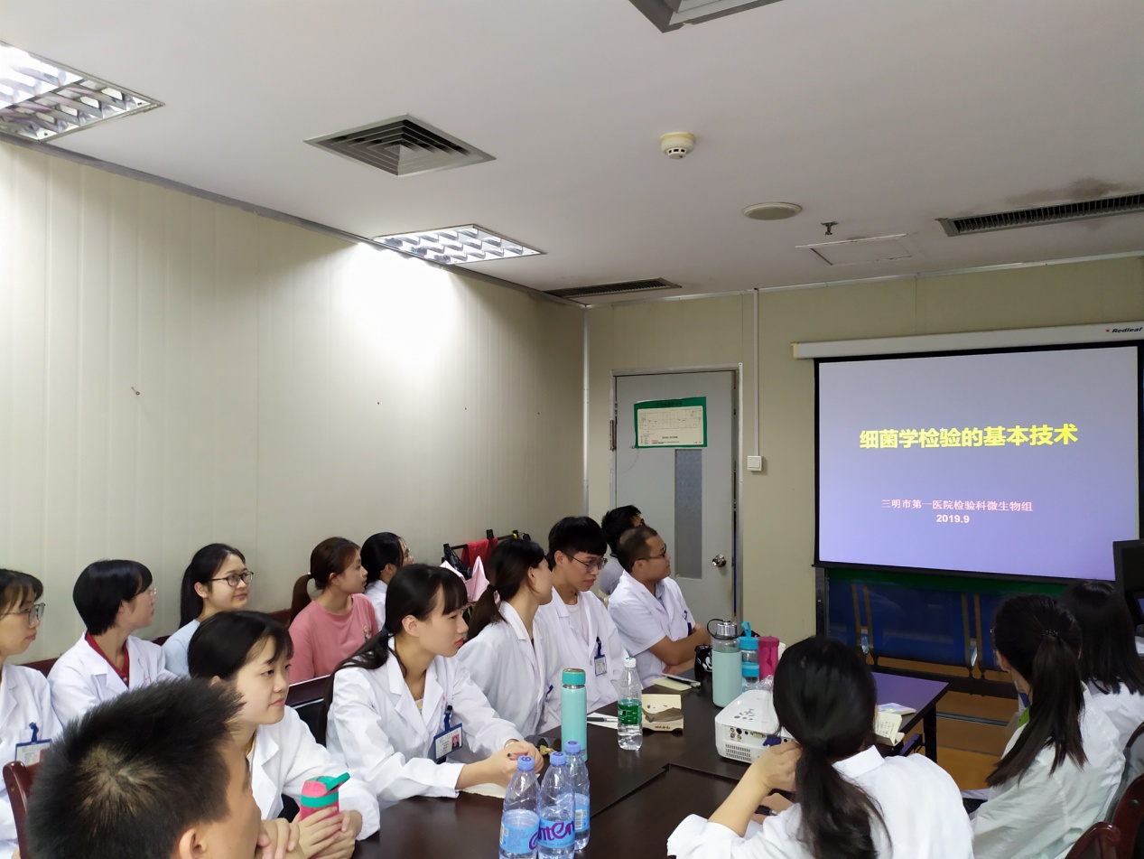 為了進(jìn)一步加強同學(xué)們細(xì)菌學(xué)檢驗的相關(guān)知識,三明市第一醫(yī)院檢驗科朱虹老師于2019925日下午,在檢驗科會議室開展《細(xì)菌學(xué)檢驗的基本技術(shù)》專業(yè)教學(xué)講座。我系檢驗專業(yè)全體同學(xué)均參加了此次講座。朱虹老師結(jié)合多年積累的臨床經(jīng)驗和臨床案例,緊緊圍繞細(xì)菌學(xué)的形態(tài)學(xué)檢查、細(xì)菌的分離培養(yǎng)、細(xì)菌的鑒定來講解。朱老師指出,細(xì)菌學(xué)檢驗是一門抽象的學(xué)科,同學(xué)們需要臨床與理論知識相結(jié)合,要定期對相關(guān)知識進(jìn)行系統(tǒng)的歸納,并要求同學(xué)們能夠利用這次臨床實習(xí)的機會,不斷完善專業(yè)知識,不斷提高專業(yè)操作技能。此次講座讓實習(xí)生對細(xì)菌學(xué)檢驗的學(xué)習(xí)有了更明確的方向,進(jìn)一步掌握了細(xì)菌學(xué)檢驗的技能,為同學(xué)們將來成為一名優(yōu)秀的檢驗工作者奠定了基礎(chǔ)。