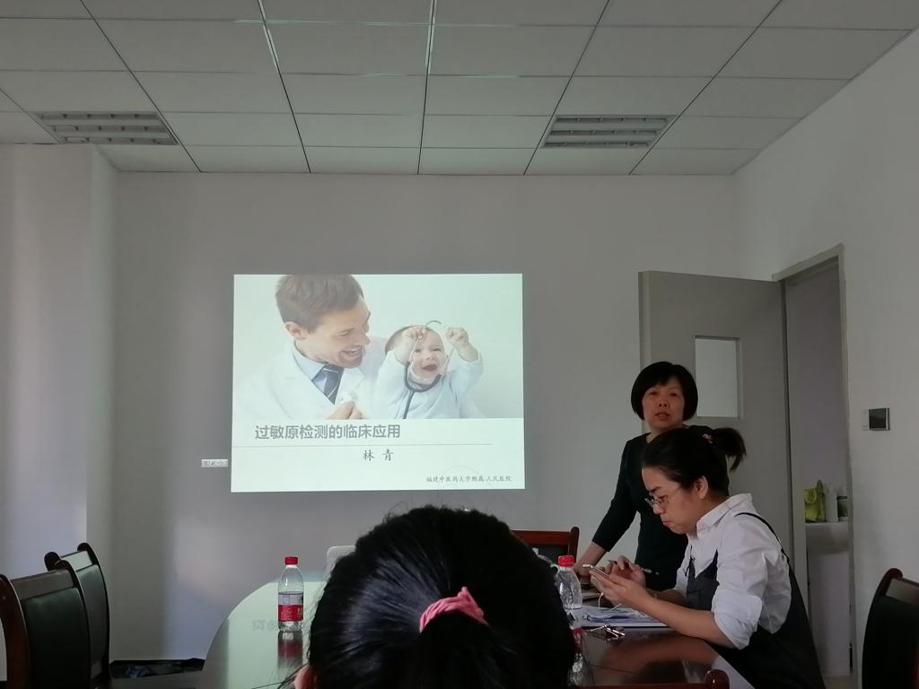 20191113日下午,為加強(qiáng)同學(xué)們?cè)谏M實(shí)習(xí)過程中能夠更好結(jié)合理論與操作,福建中醫(yī)藥大學(xué)附屬人民醫(yī)院檢驗(yàn)科在會(huì)議室對(duì)實(shí)習(xí)生開展了關(guān)于的專題講座,我系8名實(shí)習(xí)生均參與了此次授課。林青老師首先給同學(xué)們帶來《過敏原檢測的臨床應(yīng)用》,詼諧幽默的語言讓同學(xué)們更加深刻記住了過敏原的分類,過敏原的發(fā)生機(jī)制等知識(shí)點(diǎn)。隨后,秦雪君老師給同學(xué)們帶來《臨床生化檢驗(yàn)的準(zhǔn)與不準(zhǔn)?》向同學(xué)們分享了幾個(gè)經(jīng)典的臨床案例并著重提到了檢驗(yàn)科的工作任務(wù)。最后林青主任希望同學(xué)們能夠把學(xué)到知識(shí)能夠結(jié)合臨床,做到學(xué)以致用。