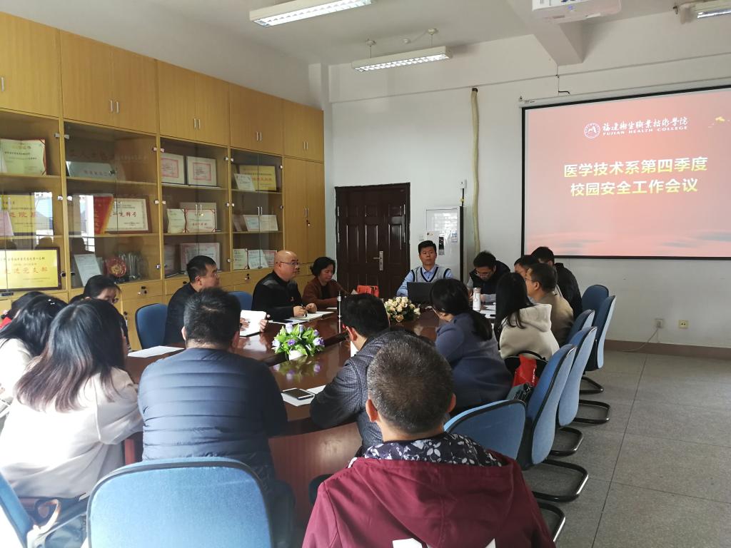 12月26日下午,醫(yī)學(xué)技術(shù)系在系部會(huì)議室召開2019年第四季度安全穩(wěn)定工作會(huì)議。會(huì)議由我系黨總支負(fù)責(zé)人邱滾忠同志主持,翁繩和主任、魏碧娜副主任、各支部書記、各教研室主任、實(shí)訓(xùn)中心主任、辦公室主任、輔導(dǎo)員參加此次會(huì)議。