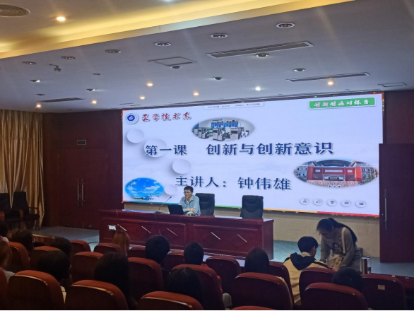 開(kāi)班儀式上,醫(yī)學(xué)技術(shù)系第二黨支部鐘偉雄老師用生動(dòng)形象的案例和樸實(shí)真切的語(yǔ)言與在座的同學(xué)們描繪創(chuàng)新及創(chuàng)新意識(shí)的藍(lán)圖。鼓勵(lì)同學(xué)不畏困難,勇于創(chuàng)新。