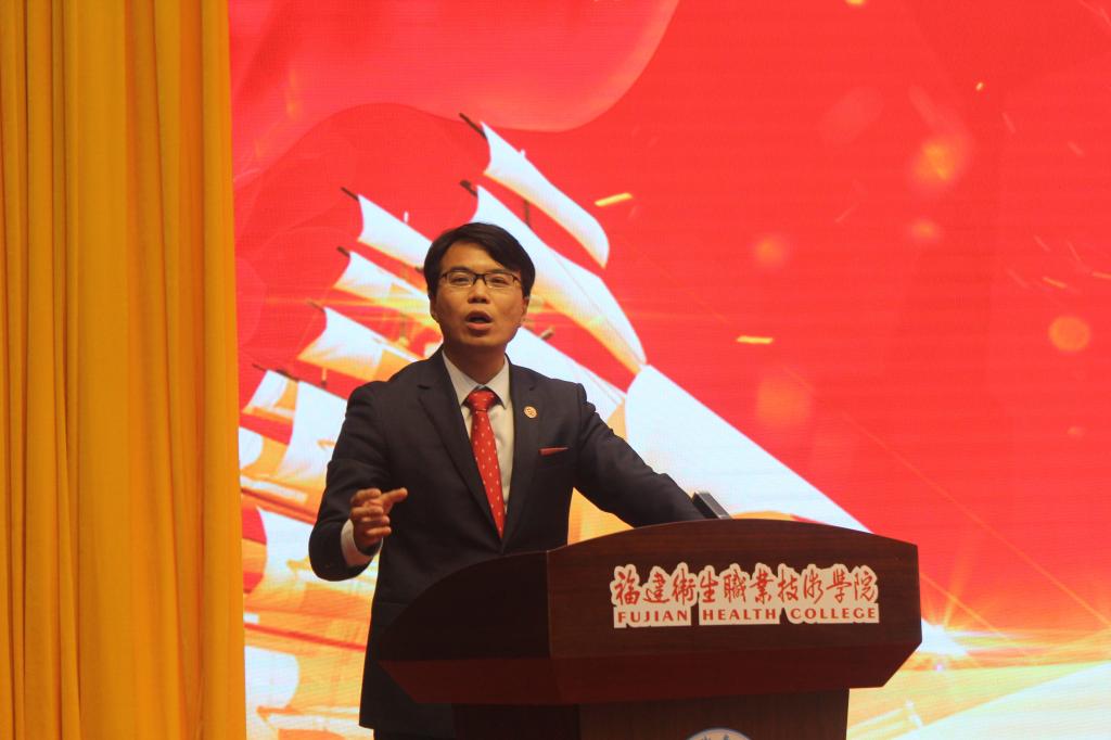 福建省腫瘤醫(yī)院的帶教老師陳超作為校企合作代表作了精彩發(fā)言,他深厚的國學(xué)底蘊(yùn)和幽默風(fēng)趣的語言魅力征服了在場師生,他勉勵畢業(yè)生爭做“專能、多能、全能”干細(xì)胞,耐得住寂寞,十年磨一劍力,在奮斗中沉淀實(shí)力,一鳴驚人。