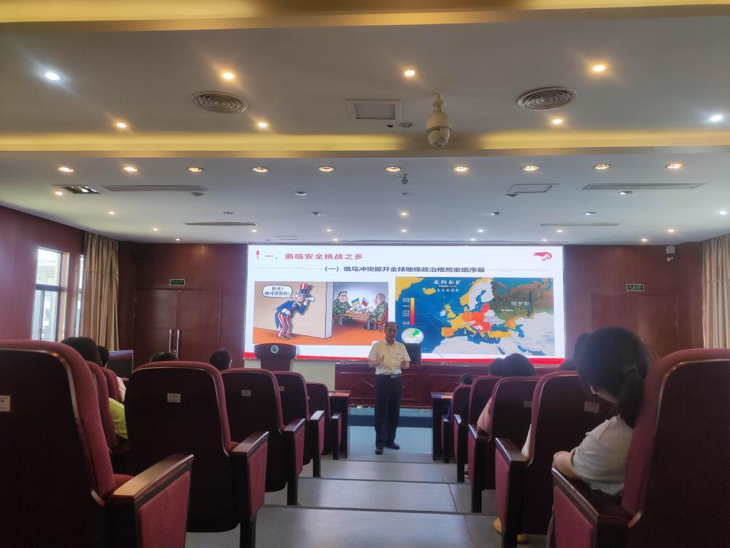 許能鋒從“面臨安全挑戰(zhàn)之多、認(rèn)清安全問題之因、彰顯中國擔(dān)當(dāng)之行、奮力譜寫青春之歌”等四個(gè)角度,深入分析國際局勢,全面講述“人類社會何去何從”這一時(shí)代命題的中國思路、中國方案和中國行動(dòng),引導(dǎo)青年學(xué)子關(guān)注國際形勢、關(guān)心國家大事,在矢志奮斗中譜寫新時(shí)代的青春之歌。
