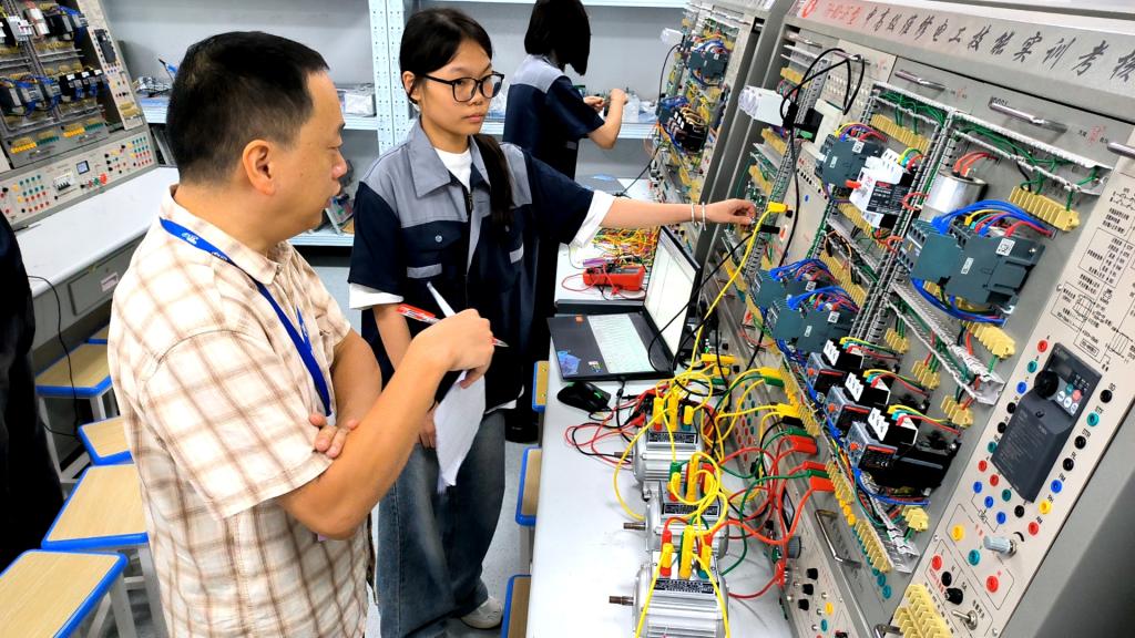 本次認定考核分為理論考核與實操考核,其中實操考核含題目一、題目二、題目三等三個環(huán)節(jié),依據(jù)國家職業(yè)技能標準、職業(yè)技能等級認定規(guī)范,充分考察考生的繼電器控制電路裝調(diào)維修、電器設(shè)備(裝調(diào))裝調(diào)維修、可編程控制系統(tǒng)分析與變頻器調(diào)試維修、電子電路故障調(diào)試維修等綜合能力。