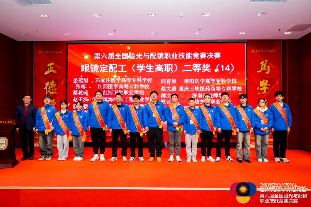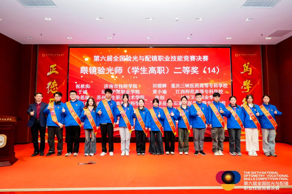 2024年11月25日,第六屆全國驗光與配鏡職業(yè)技能競賽決賽在江蘇丹陽圓滿落幕。本次競賽于11月22日至25日期間舉行,匯聚了來自全國各地45所高職院校的眼視光專業(yè)技能人才,經(jīng)過激烈角逐,我校醫(yī)學技術(shù)與工程學院眼視光技術(shù)專業(yè)的謝詩婷與廖展毅兩位同學憑借出色的專業(yè)技能和穩(wěn)定的發(fā)揮,分別榮獲驗光(高職組)和定配(高職組)的二等獎。
