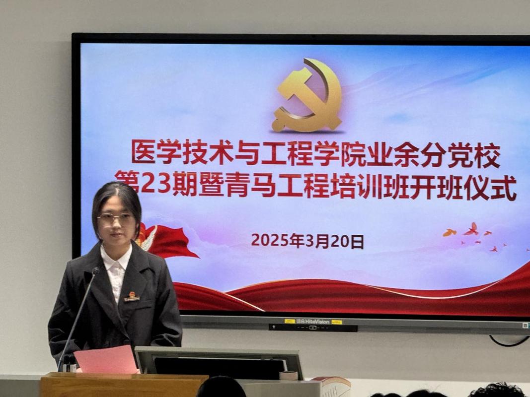 3月20日,醫(yī)學(xué)技術(shù)與工程學(xué)院舉行業(yè)余分黨校第23期暨青馬工程培訓(xùn)班開班儀式。學(xué)校紀(jì)委書記林玲,學(xué)院黨委書記柯瓊鶯、副書記林燕、學(xué)生黨支部書記及培訓(xùn)班學(xué)員參加開班儀式。