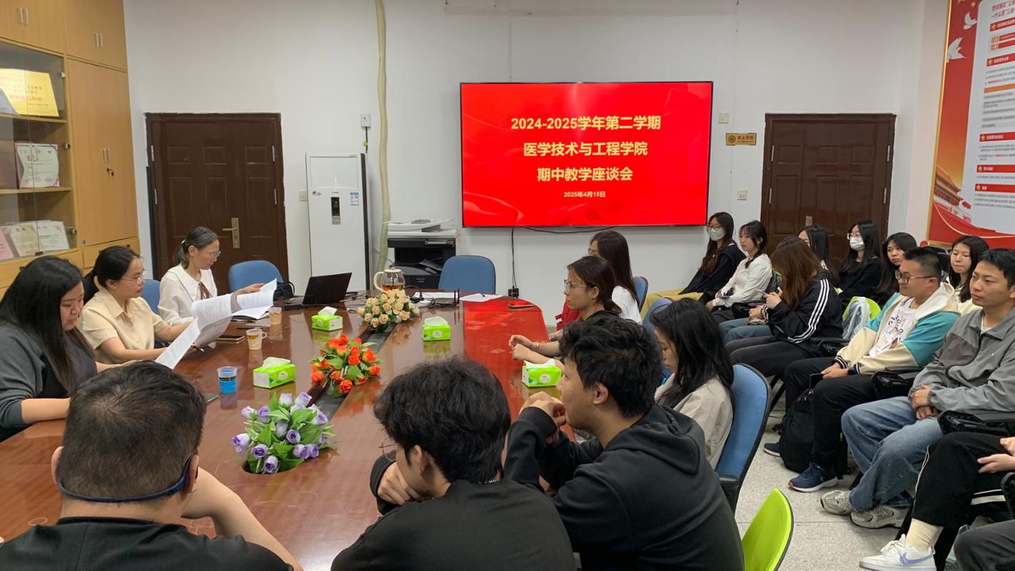 為全面了解教學(xué)運(yùn)行情況,優(yōu)化教學(xué)機(jī)制,4月15日中午,醫(yī)學(xué)技術(shù)與工程學(xué)院在學(xué)院301會(huì)議室召開期中教學(xué)座談會(huì)。學(xué)校質(zhì)量管理辦王珊珊老師、醫(yī)工學(xué)院副書記林燕老師、副院長(zhǎng)周微琳老師、教學(xué)秘書陳爍老師以及各班級(jí)學(xué)生代表共計(jì)30人參會(huì),圍繞教學(xué)設(shè)施、教學(xué)效果、日常生活等方面進(jìn)行交流。