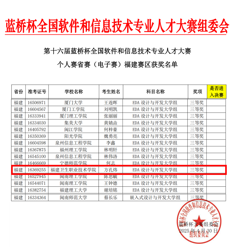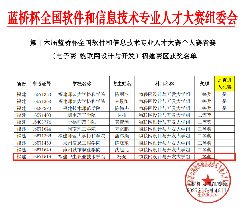 第十六屆藍(lán)橋杯全國(guó)軟件和信息技術(shù)專(zhuān)業(yè)人才大賽(福建賽區(qū))獲獎(jiǎng)名單