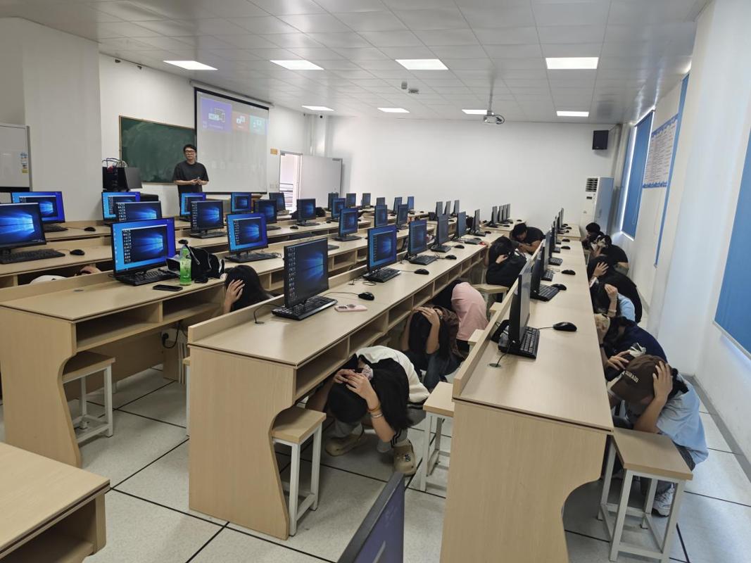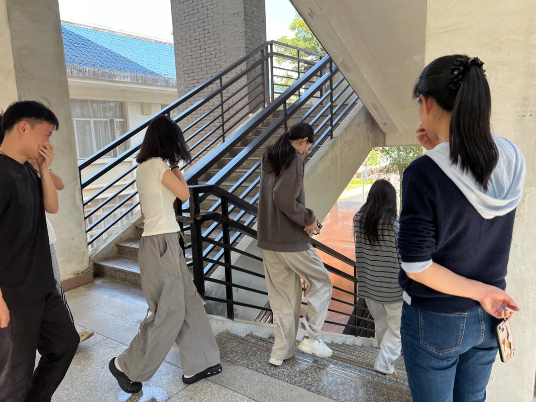第二部分應(yīng)急逃生演練(消防、地震)。演練開(kāi)啟前安全工作處林澤文老師先詳細(xì)介紹消防器材的使用、演練程序、疏散信號(hào)、疏散路線、疏散順序等注意事項(xiàng),并強(qiáng)調(diào)在疏散過(guò)程中切勿擁擠、推搡導(dǎo)致踩踏事件發(fā)生。演練工作組接到演練指令后,燃放煙霧,平靜的院部樓館突然黃煙四起、警報(bào)鈴響,負(fù)責(zé)老師迅速到達(dá)指定崗位,學(xué)生們也隨之做出反應(yīng),在現(xiàn)場(chǎng)人員的指揮下,學(xué)生們紛紛用手、濕紙巾等捂住口鼻,彎著腰從預(yù)定的逃生路線進(jìn)行撤離,撤退中所有同學(xué)緊靠右行,撤退過(guò)程井然有序,參加本次演練師生全部安全撤離到指定區(qū)域。