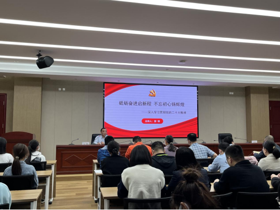 11月24日,學校紀委書記游鋒走上講臺,以《砥礪奮進啟新程 不忘初心鑄輝煌》為題,為醫(yī)學技術系黨員、學生入黨積極分子、師生代表以及紀委辦公室黨支部、農(nóng)工黨支部共100人宣講黨的二十大精神。