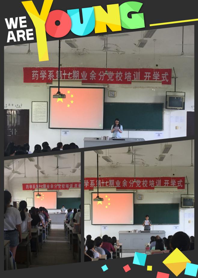 201653日,藥學系第十七期業(yè)余分黨校開班典禮在藥二階隆重舉行。藥學系黨總支蘇愛華書記、第二黨支部書記何舒瀾老師、學生黨支部書記陳瑜老師、團總支書記李寶珠老師、團總支副書記黃嵩梅老師以及輔導員蘇素嬌老師、陳翰老師出席了本次開班典禮。
