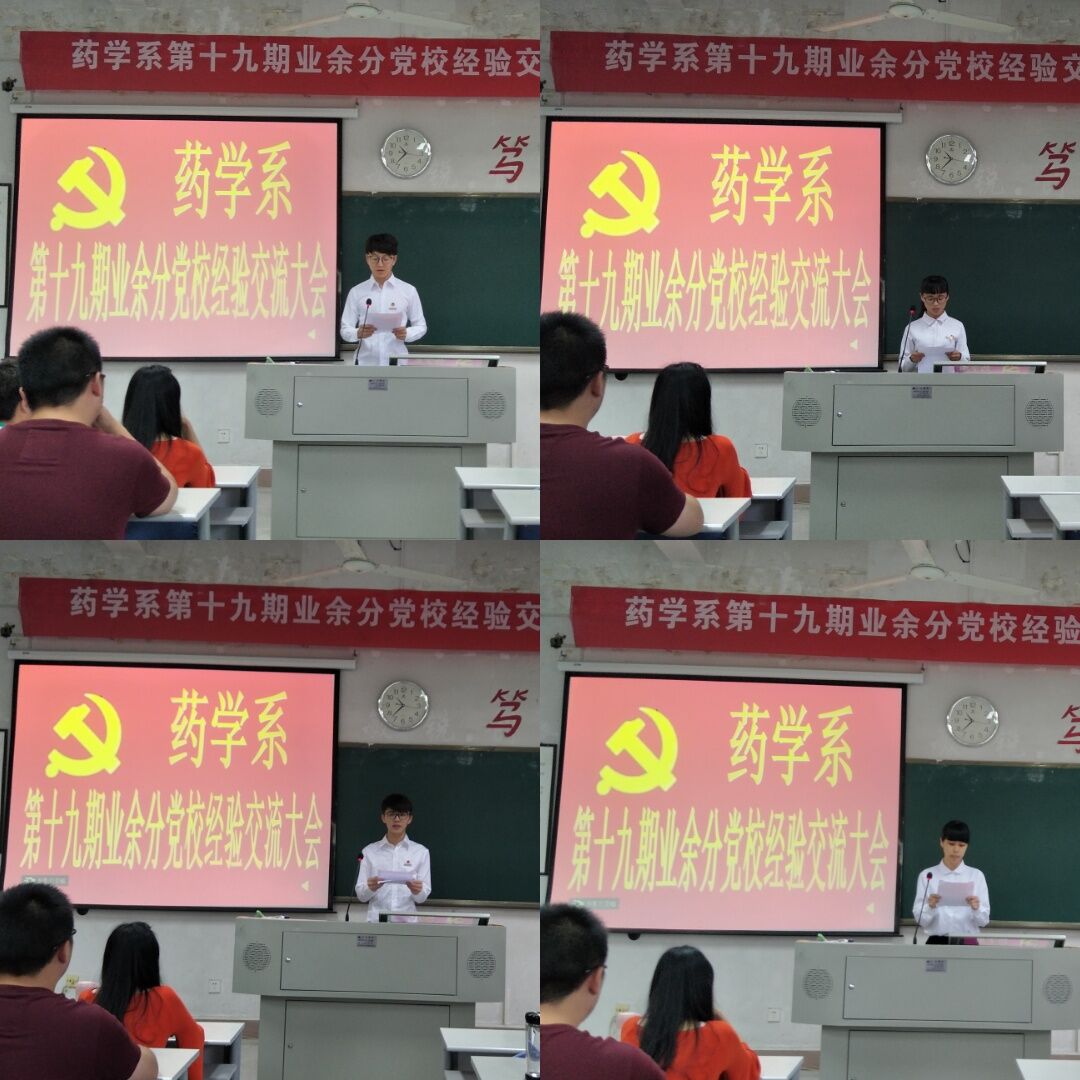 2017年6月15日,藥學(xué)系在藥一階隆重舉行第十九期業(yè)余分黨校心得交流大會。蒞臨本次大會的領(lǐng)導(dǎo)以及老師有:藥學(xué)系黨總支書記鄭力宏老師、藥學(xué)系黨總支副書記陳潔老師、藥學(xué)系團(tuán)總支書記黃嵩梅老師,以及輔導(dǎo)員陳翰老師和高施老師。