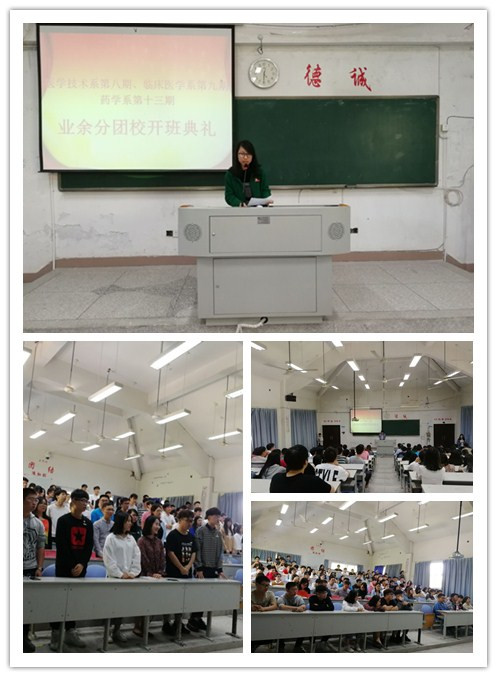 伴隨著莊嚴的國歌,開班典禮正式拉開帷幕。藥學系團總支書記黃嵩梅老師宣讀本期業(yè)余分團校學員名單,要求學員們充分認識團校培訓班的重要意義,認真參加各項培訓學習活動。隨后臨床醫(yī)學系團總支書記葉家濤老師上臺發(fā)言,他希望同學們時刻謹記自己參加團校的目的和使命,珍惜學習的機會。