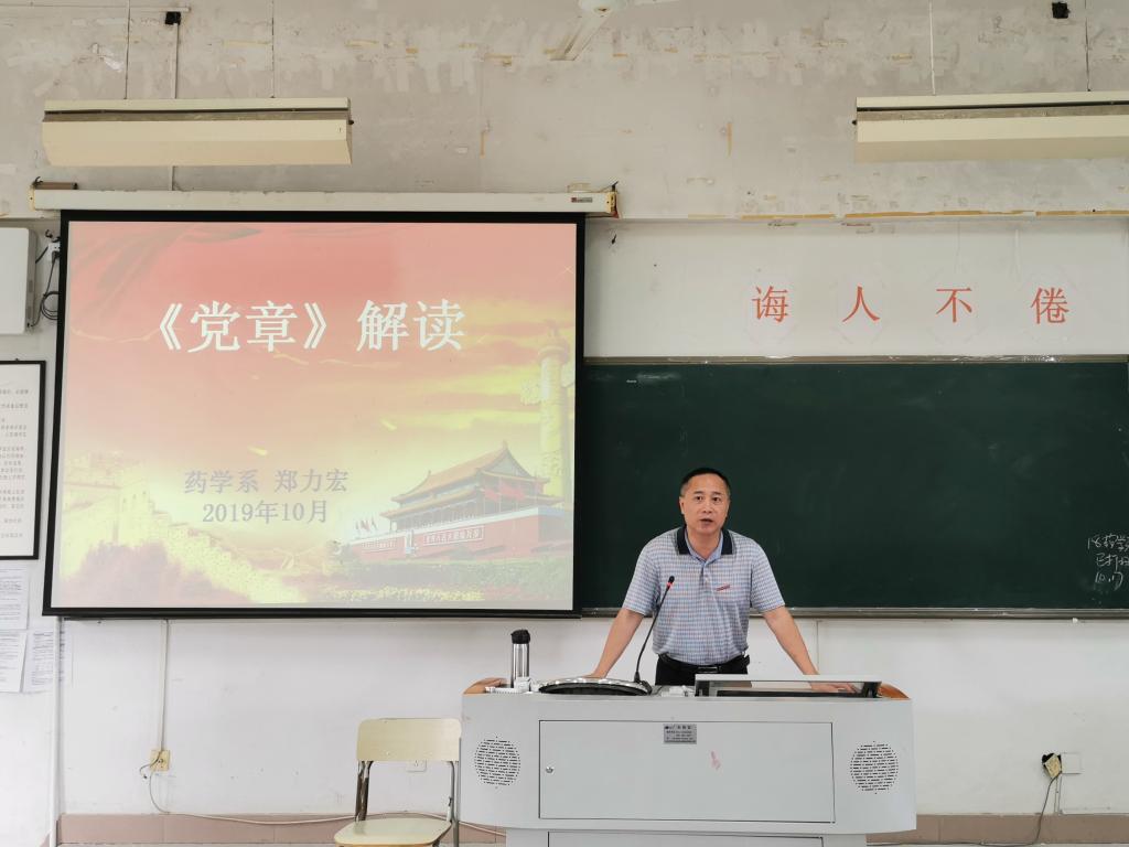 為增強入黨申請人對《中國共產黨章程》的了解,提高入黨申請人的組織紀律及政治意識,2019年10月18日,藥學系第二十二期業(yè)余分黨校在藥二階正式開課,本次黨課的主題為《中國共產黨章程》解讀,藥學系黨總支鄭力宏書記應邀主講。
