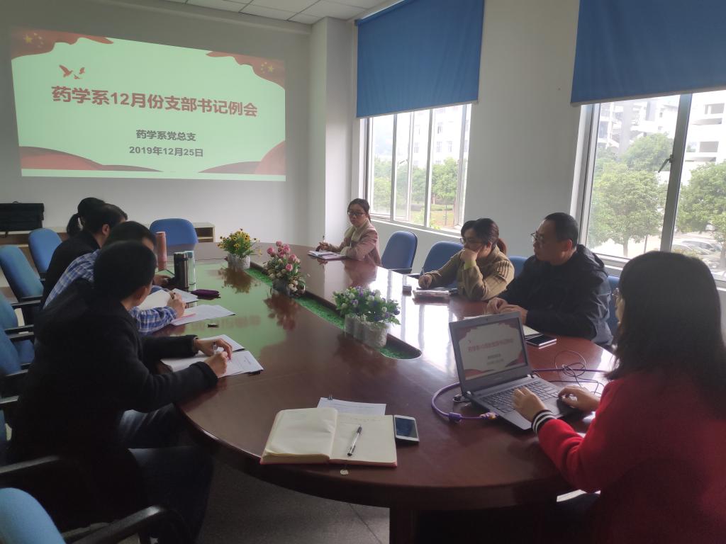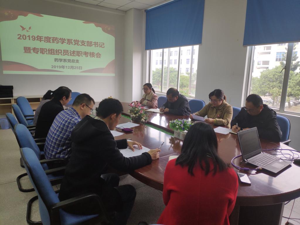 2019年12月25日,藥學(xué)系黨總支在系部會(huì)議室召開12月份支部書記例會(huì)暨黨支部書記、專職組織員述職考核會(huì),學(xué)院紀(jì)委書記游鋒蒞臨現(xiàn)場(chǎng),系黨政領(lǐng)導(dǎo)班子、總支支委、支部書記出席會(huì)議,會(huì)議由黨總支賴文金副書記主持。