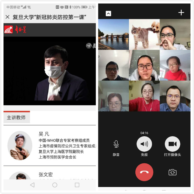 “硬核教授”張文宏與“疾控女俠”吳凡從臨床醫(yī)學、流行病學、社會治理等多角度介紹了新冠肺炎相關防控知識與政策,著重介紹了抗疫期間校園內(nèi)的防控措施?!靶鹿诜窝追揽氐谝徽n”結束后,支部書記鄧元榮立即組織支部全體成員通過微信視頻連線開展線上專題黨課,交流學習心得。鄧元榮同志以奮戰(zhàn)在一線、舍身忘我的優(yōu)秀醫(yī)務工作者為例,強調(diào)黨員的帶頭作用。