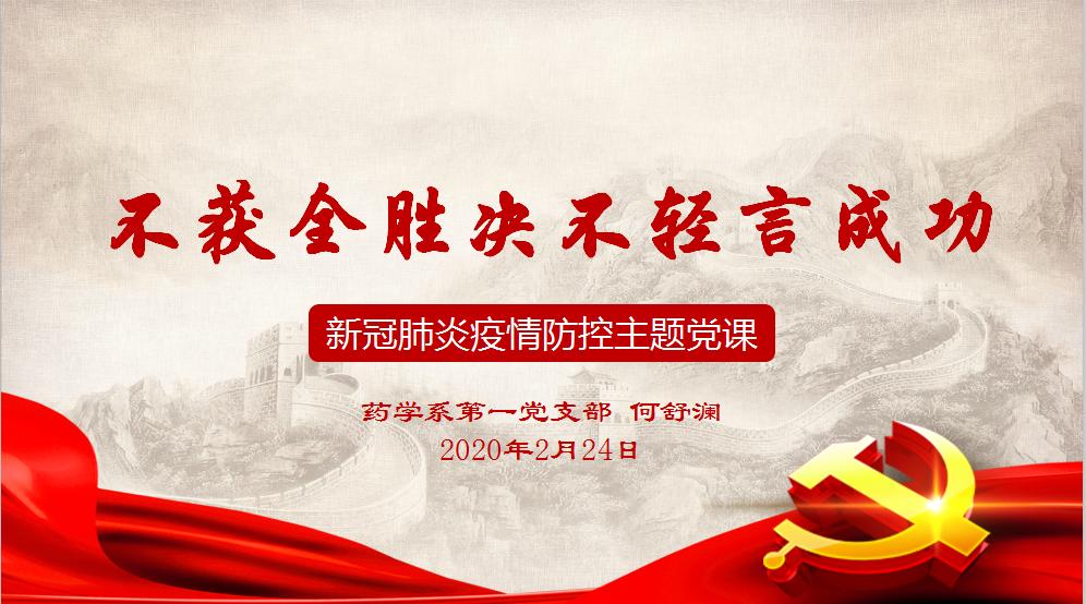 “同志們,上課啦。”2月24日,藥學(xué)系第一黨支部全體黨員按時來到騰訊會議集合,一場題為“不獲全勝、絕不輕言成功”的線上黨課正在進(jìn)行。