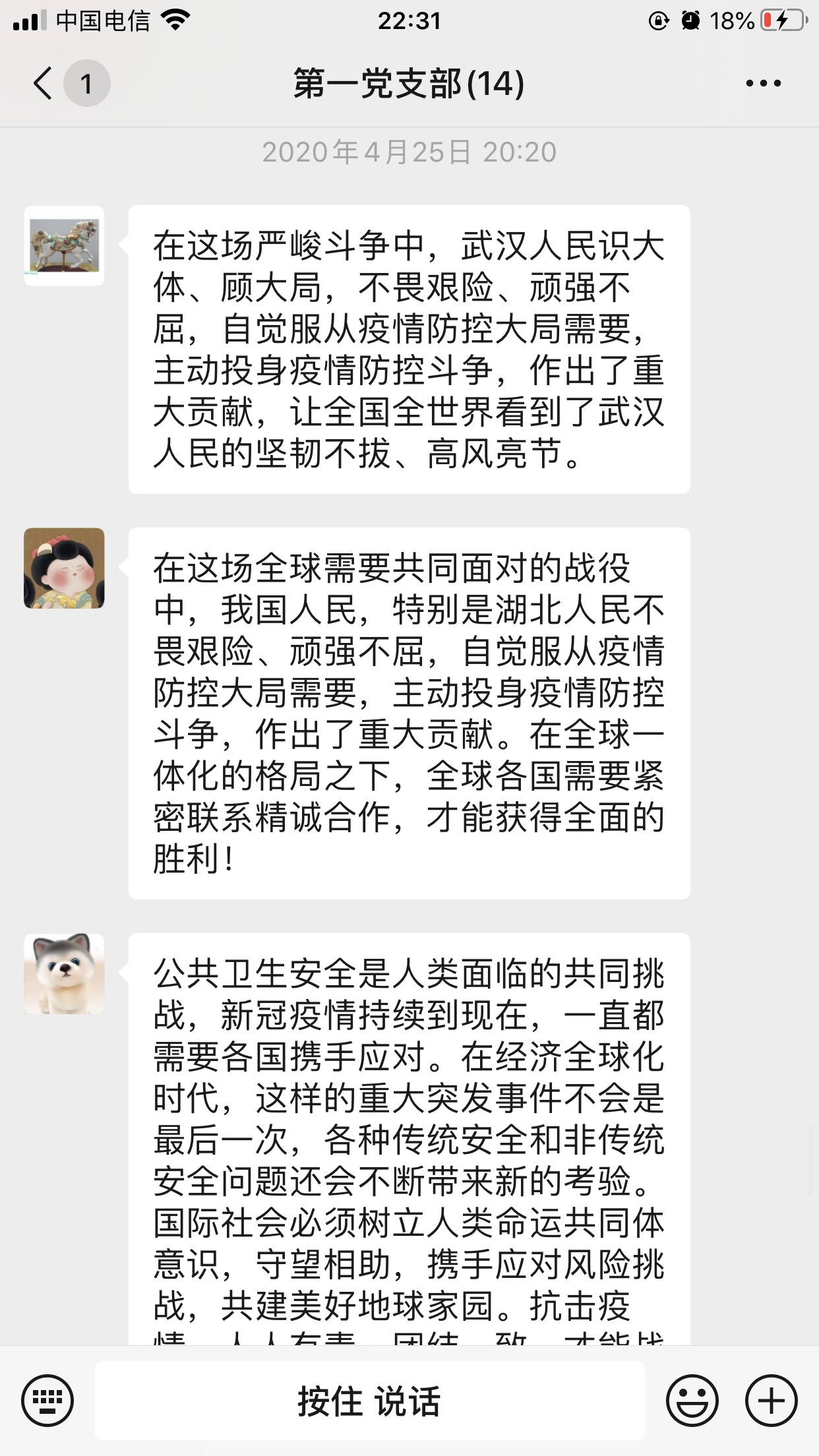通過學(xué)習(xí),黨員同志紛紛表示,面對疫情,全國人民精誠團(tuán)結(jié),萬眾一心,取得了抗擊疫情階段性的勝利,這是中國人民團(tuán)結(jié)合作取得抗疫勝利的一個(gè)重要經(jīng)驗(yàn)。當(dāng)前新冠肺炎疫情正在全球蔓延,給世界人民生命安全和身體健康帶來了巨大的威脅,受感染人數(shù)和死亡人數(shù)在不斷的增加,給全球公共衛(wèi)生安全帶來巨大挑戰(zhàn),面對這種情況,只有采用中國經(jīng)驗(yàn),只有團(tuán)結(jié)合作,才是國際社會戰(zhàn)勝疫情最有力的武器,只有國際社會團(tuán)結(jié)合作,才能最終戰(zhàn)勝疫情。