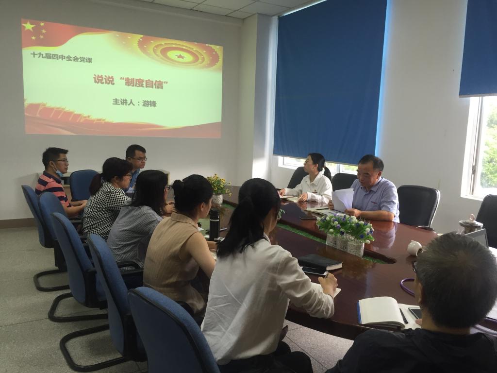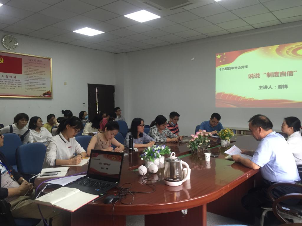 2020924日,學(xué)院紀(jì)委書記游鋒蒞臨藥學(xué)系,以“說(shuō)說(shuō)制度自信”為題,在系部會(huì)議室講授黨的十九屆四中全會(huì)專題黨課。藥學(xué)系黨總支副書記賴文金主持黨課,系全體黨員到場(chǎng)聆聽(tīng)。