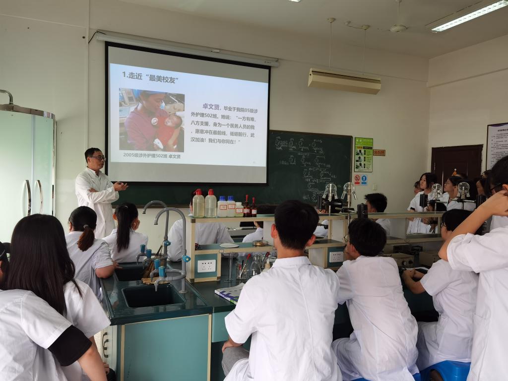 課上,肖健副主任圍繞學(xué)院校友在戰(zhàn)“疫”過程中涌現(xiàn)出的感人事跡、學(xué)院全體同仁在防“疫”關(guān)頭表現(xiàn)出的有效落實兩方面展開闡述。他強調(diào)新冠疫情爆發(fā)以來,我院許許多多校友奮戰(zhàn)在抗擊疫情的第一線,他們臨危受命,放棄春節(jié)休假,與時間賽跑,與疫情抗?fàn)帲詫嶋H行動踐行著“業(yè)精德誠”的校訓(xùn)精神,踐行著醫(yī)生誓言。他表示,希望同學(xué)們努力學(xué)習(xí),在學(xué)好專業(yè)知識的基礎(chǔ)上,不斷強化技能,今后為醫(yī)學(xué)事業(yè)的發(fā)展貢獻個人力量。