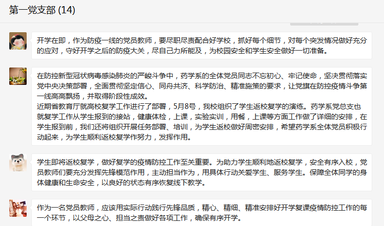 在新冠疫情防控的斗爭中,藥學(xué)系的全體黨員同志不忘初心、牢記使命,堅決貫徹落實黨中央決策部署,全面貫徹堅定信心、同舟共濟、科學(xué)防治、精準(zhǔn)施策的要求,讓黨旗在防控疫情斗爭第一線高高飄揚。