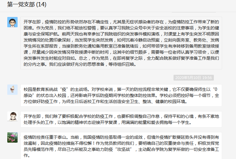 當(dāng)前,新冠疫情防控阻擊戰(zhàn)取得一定的勝利,新冠疫情防控已由應(yīng)急性常規(guī)防控向常態(tài)化防控轉(zhuǎn)變,各地高校正為復(fù)學(xué)做各種準(zhǔn)備。202059日,藥學(xué)系第一黨支部通過微信群開展“發(fā)揮黨員先鋒模范作用,全力配合院系做好復(fù)學(xué)準(zhǔn)備”專題學(xué)習(xí)會,會議由支部書記何舒瀾主持。