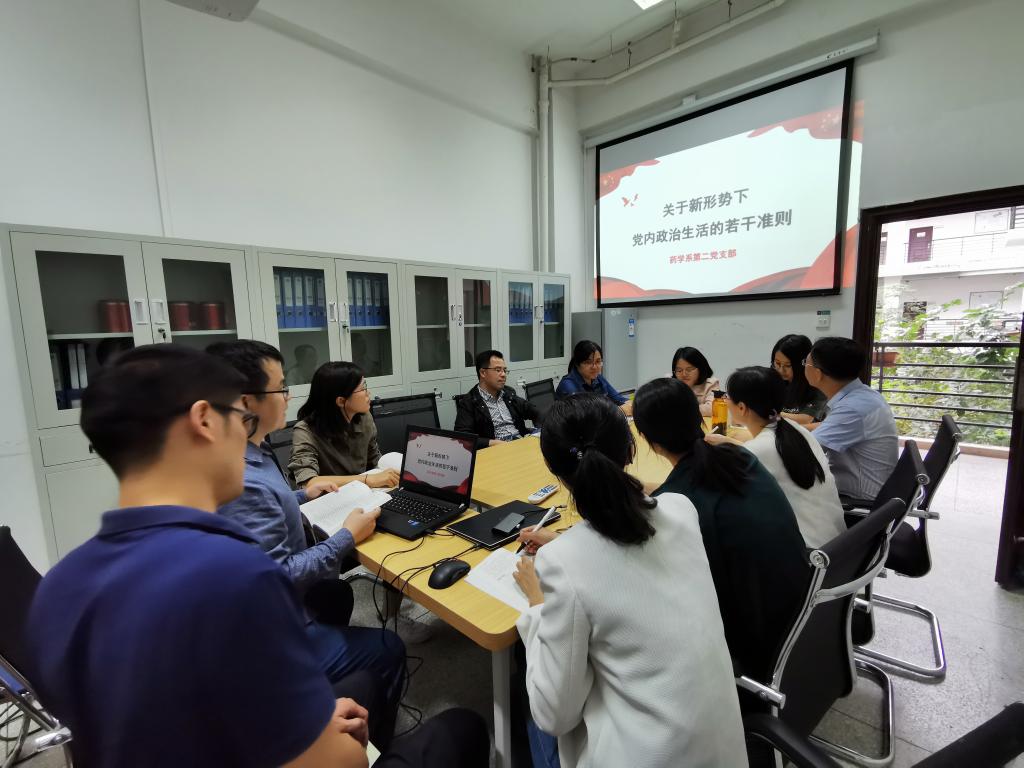 2020年9月15日,藥學系第二黨支部在藥學系202會議室開展《關于新形勢下黨內(nèi)政治生活的若干準則》專題學習會,本次專題學習由支部書記鄧元榮同志主持。