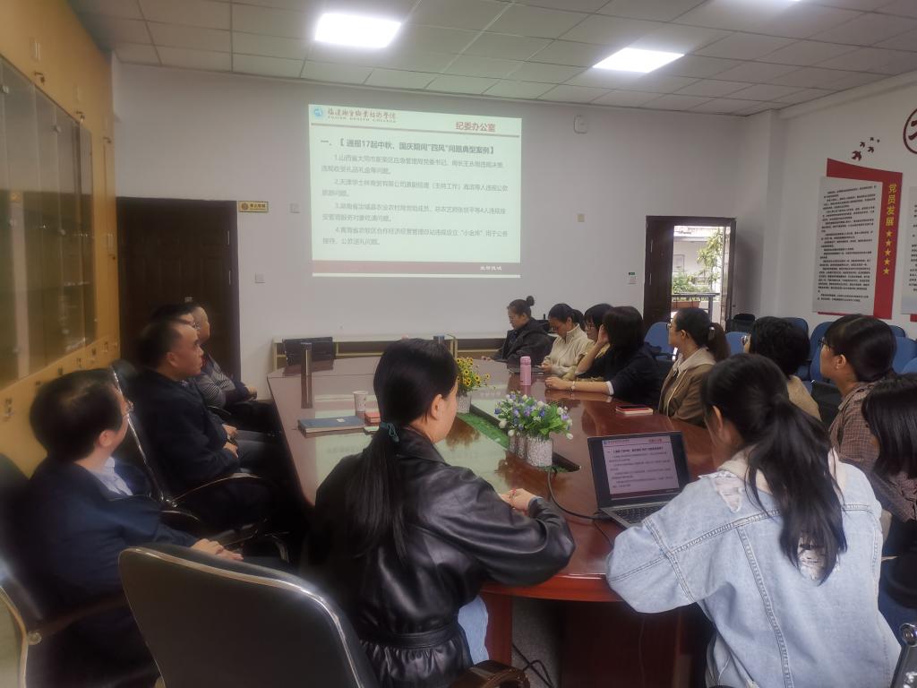 紀(jì)檢委員陳鈺組織大家學(xué)習(xí)了17起中秋、國(guó)慶期間"四風(fēng)"問(wèn)題典型案例,通過(guò)呈現(xiàn)違紀(jì)違法事實(shí),警醒各位黨員提升自律自覺(jué)意識(shí),同時(shí),強(qiáng)調(diào)大家對(duì)照“六個(gè)不足”開(kāi)展自查自糾,切實(shí)履行好工作職責(zé)、堅(jiān)守好工作崗位、遵守好工作紀(jì)律、規(guī)范好自己的行為。