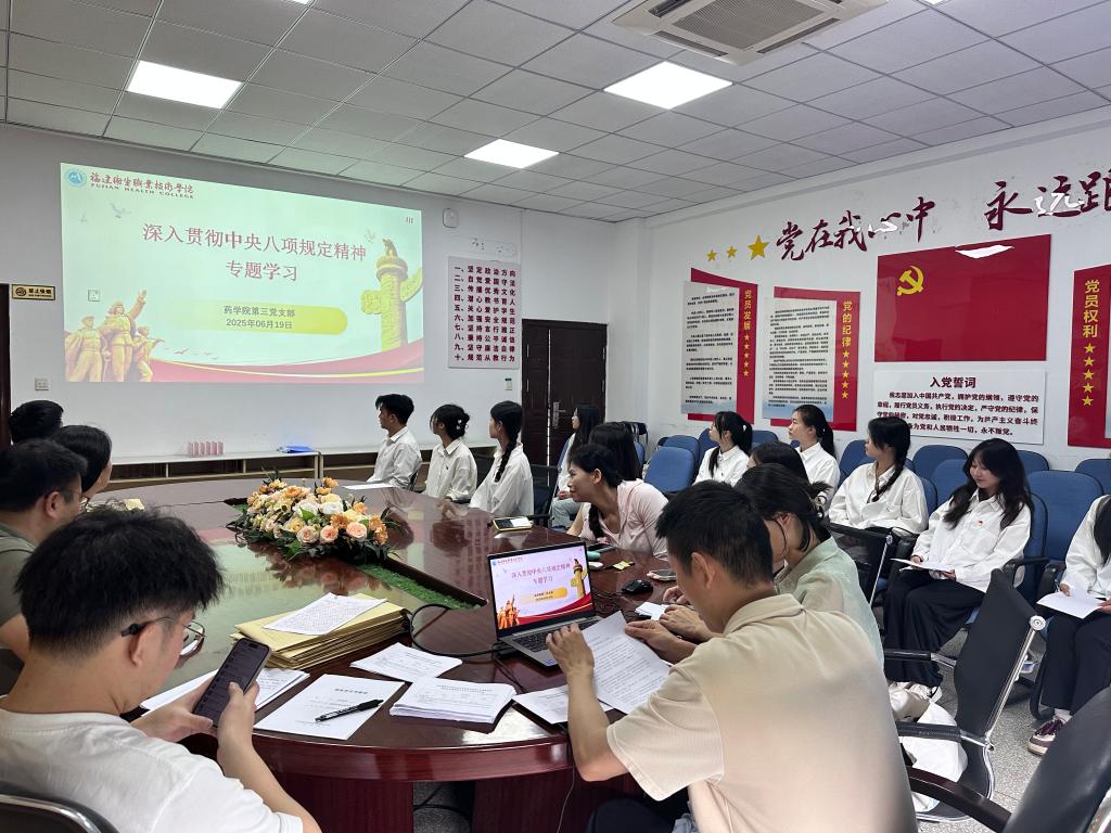 為深入貫徹中央八項規(guī)定精神學(xué)習(xí)教育,進一步加強黨支部作風(fēng)建設(shè),提升黨員干部的紀(jì)律意識和規(guī)矩意識,6月19日,藥學(xué)院第三黨支部組織全體黨員開展深入貫徹中央八項規(guī)定精神學(xué)習(xí)教育第四次專題學(xué)習(xí),重點學(xué)習(xí)了規(guī)定中的第六條 “改進新聞報道”和第七條 “嚴(yán)格文稿發(fā)表” 及相關(guān)實施細則的有關(guān)內(nèi)容。