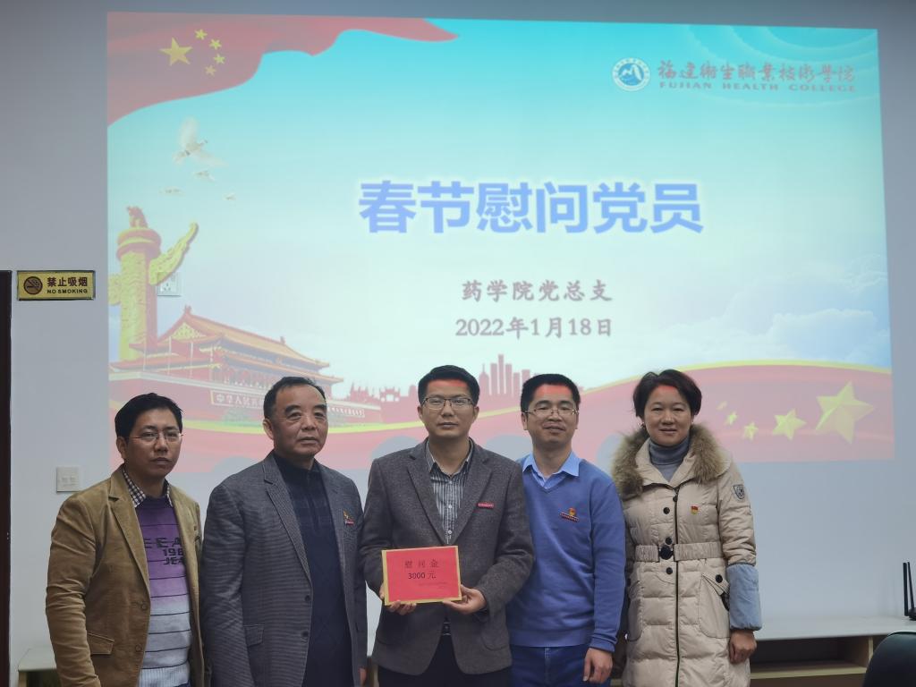 為貫徹落實(shí)《中共福建省委教育工委辦公室關(guān)于在元旦春節(jié)期間開(kāi)展走訪慰問(wèn)生活困難黨員、老黨員、老干部活動(dòng)的通知》(閩委教辦組〔2021〕4號(hào))要求,使廣大黨員、干部和群眾深切感受到以習(xí)近平同志為核心的黨中央的關(guān)懷和溫暖,2022年1月18日藥學(xué)院黨總支在會(huì)議室組織開(kāi)展春節(jié)慰問(wèn)黨員活動(dòng)。校紀(jì)委書記游鋒、藥學(xué)院領(lǐng)導(dǎo)班子蒞臨現(xiàn)場(chǎng)。