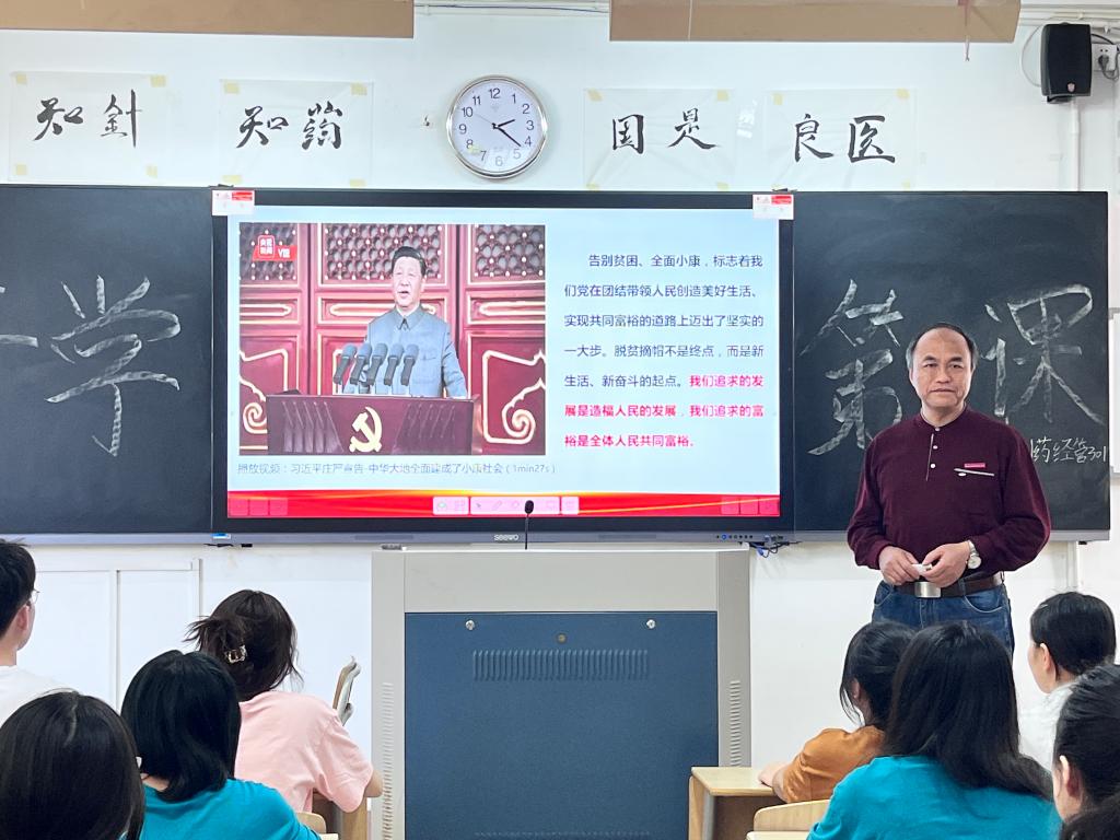許能鋒校長由習近平總書記“七一”重要講話的論述引出主題,從共同富裕的歷史經驗、主要內容、重大意義等角度出發(fā),就共同富裕的科學內涵、實踐路徑及未來征程與在場同學們進行深入探討。在講授中,許能鋒校長結合我校“十三五”取得的成效,以及對“十四五”規(guī)劃的展望,從我校醫(yī)學專業(yè)精準技術扶貧,實現(xiàn)“讓教育更有效阻斷貧困代際傳遞”;從建設資助工作規(guī)范化,確保“不讓一名學生因家庭經濟困難而失學”的生動闡述,充分展示我校與“共同富?!鼻Ыz萬縷的聯(lián)系。他勉勵閩衛(wèi)學子牢記習近平總書記囑托,不負韶華,不負時代,不負人民,為推動共同富裕貢獻青春力量。