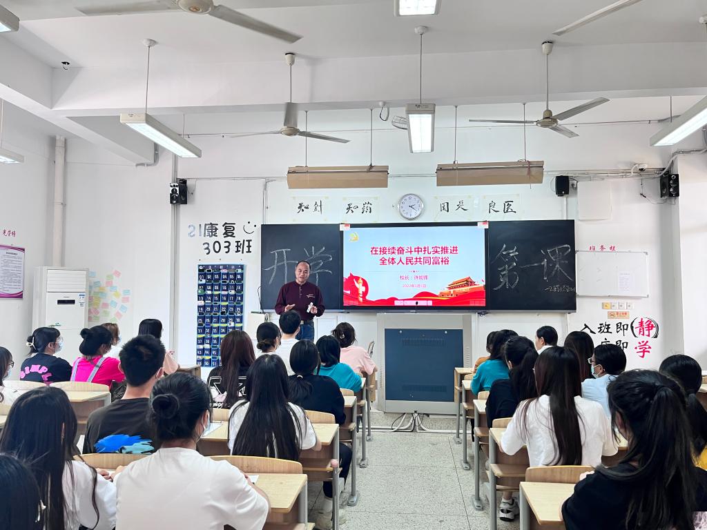為深入學習貫徹習近平總書記關于“共同富?!毕盗兄匾撌?,激勵大學生扛起守好“紅色根脈”的時代責任,5月5日下午,校長許能鋒以“在持續(xù)奮斗中扎實推進全體人民共同富?!睘橹黝},為藥學院學生講授“開學第一課”。