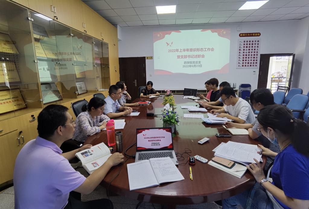 2022年6月23日,藥學(xué)院黨總支在207會議室組織召開2022年上半年意識形態(tài)工作會暨支部書記述職會,藥學(xué)院意識形態(tài)工作領(lǐng)導(dǎo)小組成員、各總支委員、支部書記到場參會,會議由黨總支書記林穎峰主持。