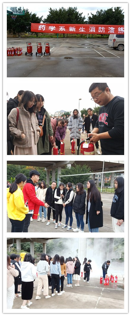 為增強(qiáng)學(xué)生的消防安全責(zé)任意識,提高消防安全防范技能,12月27日下午1點(diǎn),由藥學(xué)系保衛(wèi)部組織的火盆演練在籃球場如火如荼開展。出席本次演練的有藥學(xué)系黨總支副書記陳潔、團(tuán)總支副書記尹德愛、輔導(dǎo)員及2018級全體學(xué)生。 演練開始前,保衛(wèi)處老師為大家詳細(xì)講解了關(guān)于滅火器使用的基本常識及滅火的基本要領(lǐng)和注意事項(xiàng),同時(shí)指導(dǎo)同學(xué)們?nèi)绾握_使用滅火器。認(rèn)真聽完老師的講解后,2018級的同學(xué)們依次上前依次學(xué)習(xí)了如何正確使用滅火器撲火。面對眼前熊熊燃燒的火堆,同學(xué)們按照滅火的步驟和方法,手提干粉滅火器,快速拔掉保險(xiǎn)銷對準(zhǔn)火源根部按下把手向火源噴去。整個(gè)動(dòng)作一氣呵成火焰迅速被撲滅。 通過本次的演練使學(xué)生們基本了解了火災(zāi)發(fā)生時(shí)的應(yīng)對措施,大大增強(qiáng)了大家的安全意識與自護(hù)自救技能。