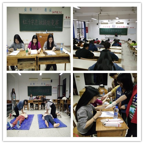 為了使學(xué)生了解基本急救知識(shí),學(xué)習(xí)并掌握基本的急救技能,鍛煉臨場(chǎng)急救能力,增強(qiáng)學(xué)生自救互救的能力,藥學(xué)系分別于2016年4月11日及4月12日晚在教學(xué)樓214舉辦“紅十字會(huì)急救知識(shí)競(jìng)賽”及“紅十字會(huì)急救技能大賽”。