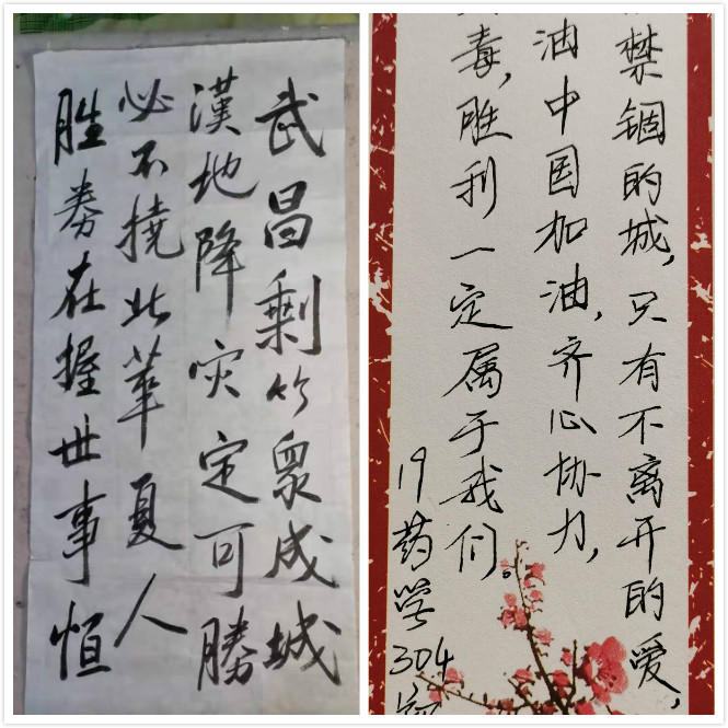 新型冠狀病毒肺炎疫情來勢洶洶,牽動著閩衛(wèi)院學(xué)子的心。藥學(xué)系學(xué)子以書法作品和書信的形式, 積極投身抗擊疫情的歷史洪流,助力抗“疫”。此次活動共收集書法、書信作品七十幾件。筆墨行間對奮戰(zhàn)在疫情前線白衣天使的崇敬之情,對戰(zhàn)勝疫情的信心和決心躍然紙上。同學(xué)們表示將盡自己的綿薄之力,傳播凝心聚力正能量,助力打贏疫情防控阻擊戰(zhàn)。