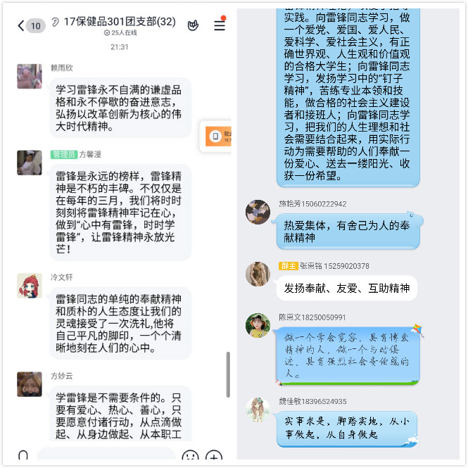 本次活動(dòng)面向全系團(tuán)員青年,共計(jì)42個(gè)團(tuán)支部參與其中,各團(tuán)支部圍繞主題,依托QQ、微信等網(wǎng)絡(luò)視頻會(huì)議平臺(tái),分別以PPT解讀、視頻交流、詩(shī)朗誦觀看雷鋒系列影片、問(wèn)卷調(diào)查等多種形式展開。其中17藥學(xué)302班團(tuán)支部結(jié)合本次疫情,圍繞雷鋒精神,通過(guò)觀看雷鋒電影和紀(jì)錄片,帶領(lǐng)同學(xué)們加深對(duì)雷鋒的理解;19藥經(jīng)管301班則通過(guò)PPT解讀的形式和同學(xué)們分享雷鋒同志的精神和事跡,引導(dǎo)同學(xué)們以實(shí)際行動(dòng)講好新時(shí)代雷鋒故事。