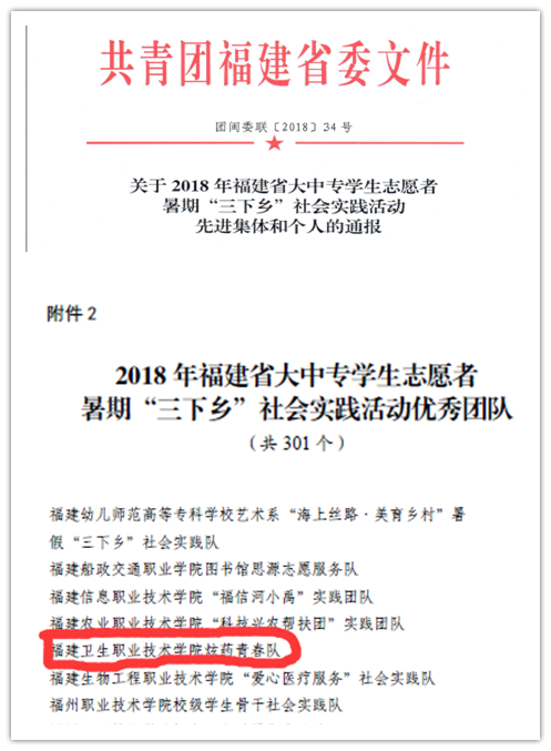 ,近期團(tuán)省委對在 2018 年福建省大中專學(xué)生志愿者暑期文化科技衛(wèi)生“三下鄉(xiāng)”社會實踐活動中表現(xiàn)突出的單位及個人進(jìn)行表彰,藥學(xué)系炫藥青春實踐隊光榮上榜,榮獲福建省大中專學(xué)生志愿者暑期三下鄉(xiāng)社會實踐活動優(yōu)秀團(tuán)隊榮譽(yù)稱號。