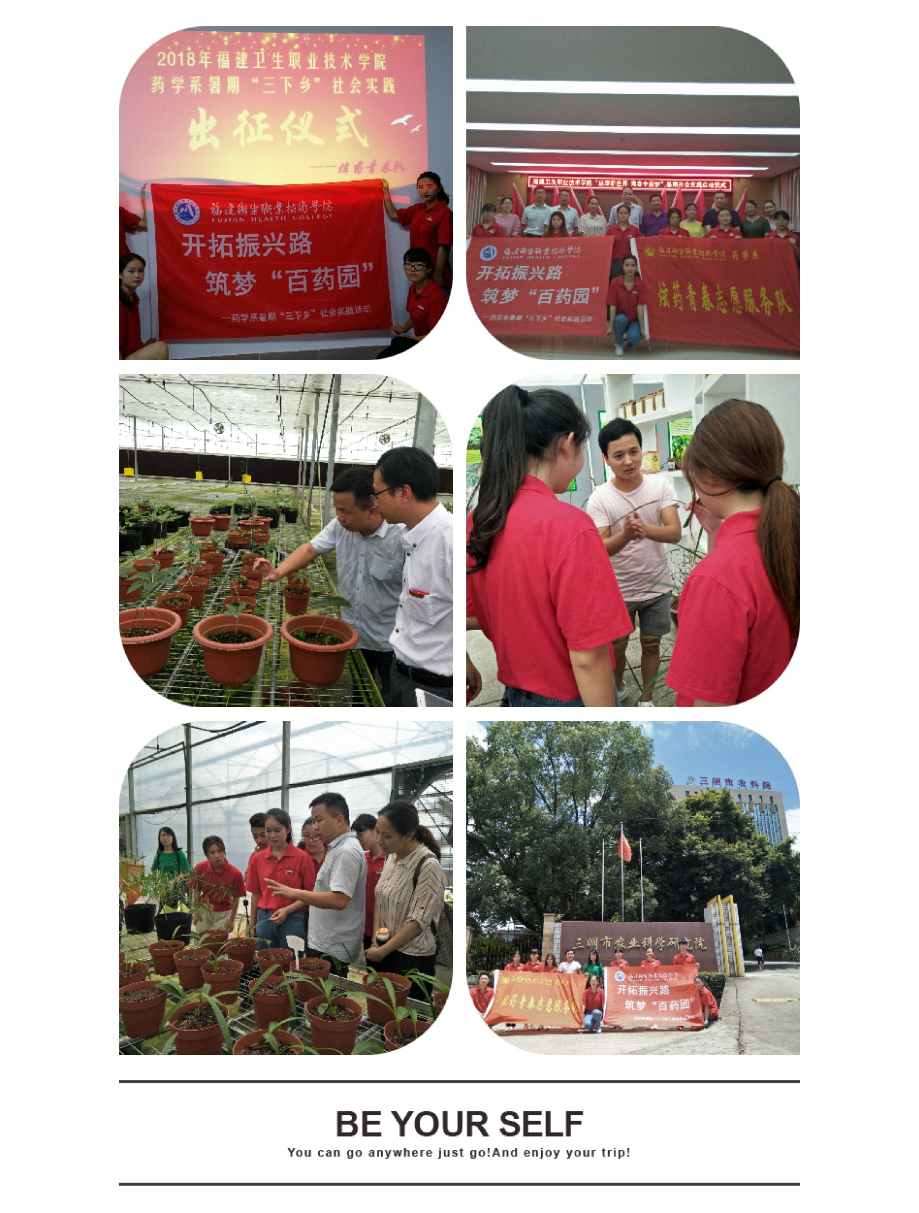 為深入學(xué)習(xí)宣傳貫徹習(xí)近平新時(shí)代中國(guó)特色社會(huì)主義思想和黨的十九大精神,引導(dǎo)青年學(xué)生在投身“一帶一路”倡議的生動(dòng)實(shí)踐中成長(zhǎng)成才,福建衛(wèi)生職業(yè)技術(shù)學(xué)院藥學(xué)系積極響應(yīng)號(hào)召,通過(guò)網(wǎng)絡(luò)申報(bào)立項(xiàng),承接團(tuán)中央學(xué)校部“絲路新世界·青春中國(guó)夢(mèng)”大學(xué)生暑期社會(huì)實(shí)踐專(zhuān)項(xiàng)行動(dòng)。此次行動(dòng),我系成立“炫藥青春”實(shí)踐團(tuán),由黨總支陳潔副書(shū)記,團(tuán)總支黃嵩梅、尹德愛(ài)老師,專(zhuān)業(yè)指導(dǎo)老師鄧元榮、何舒瀾、林貴燦老師,輔導(dǎo)員蘇素嬌、高施老師及10名學(xué)生組成,全團(tuán)18人于2018年7月13日—7月17日奔赴三明市明溪縣夏陽(yáng)鄉(xiāng)展開(kāi)實(shí)地調(diào)研,以“開(kāi)拓振興路,筑夢(mèng)百藥園”為主題,聯(lián)合當(dāng)?shù)剜l(xiāng)鎮(zhèn)政府,圍繞道地藥材種植,助力產(chǎn)業(yè)振興。