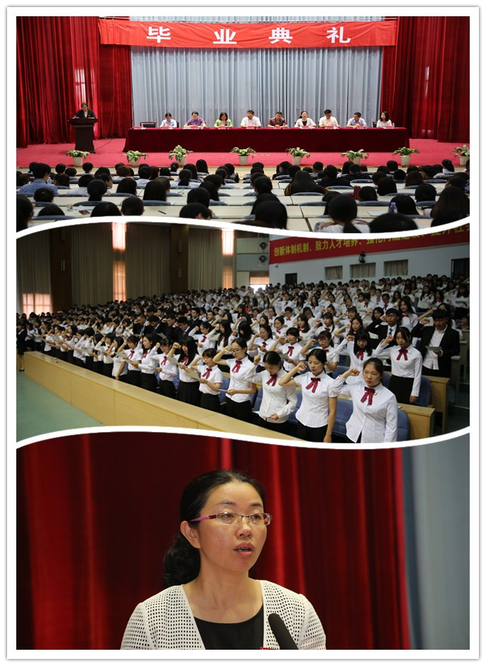 最后,黃銘珊副院長(zhǎng)代表學(xué)院做重要講話,向?qū)W有所成,即將告別母校,踏上新的人生征程的2018屆畢業(yè)生表示最熱烈的祝賀,向?yàn)閷W(xué)生成才而付出辛勤勞動(dòng)的老師表達(dá)誠(chéng)摯謝意。同時(shí)對(duì)全體畢業(yè)生提出以下三點(diǎn)要求:一是轉(zhuǎn)換角色,找準(zhǔn)定位,樹(shù)立志向。二是勤于學(xué)習(xí),勇于實(shí)踐,努力成才。三是牢記校訓(xùn),踐行誓言,建功立業(yè)。希望同學(xué)們常關(guān)心學(xué)院的發(fā)展,衷心祝愿畢業(yè)生在新的人生路上再創(chuàng)佳績(jī)。