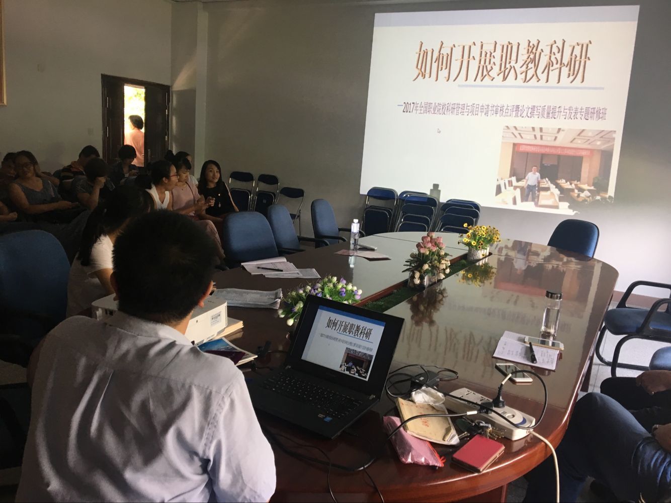 會上,鄧元榮、何舒瀾、王燕、林偉鈴、陳翰等五位老師分享了分別參加《2017年全國職業(yè)院校科研管理與項目申請書審核點評暨論文撰寫質(zhì)量提升與發(fā)表專題研修班》、 《全國創(chuàng)新創(chuàng)業(yè)教育整體教學解決方案骨干教師高級研修班》、《全國職業(yè)院校翻轉(zhuǎn)課堂微課教學設計開發(fā)應用及信息化教學模式創(chuàng)新專題培訓班》、《全國職業(yè)院校品牌、特色、重點專業(yè)和實訓基地建設務實操作研修班》、《第八期全國職業(yè)院校學生工作者專業(yè)素質(zhì)提升高級研修班》等培訓會,匯報了自己學習的收獲及所感、所悟,尤其是對照自己的工作進行了深刻反思,同時在提高教學和科研質(zhì)量方面提出了許多建設性的建議。