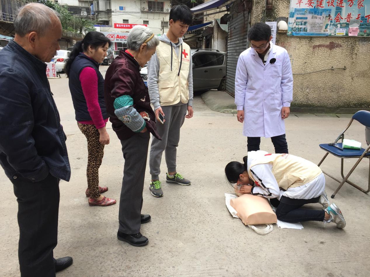此次義診的內(nèi)容包括為社區(qū)居民測視力、測量血壓、血糖,以及做社區(qū)志愿者,幫助社區(qū)進(jìn)行資料入庫。院紅十字會成員向社區(qū)居民們示范了關(guān)于心臟驟停后的急救措施、心肺復(fù)蘇的演習(xí)以及手腕受傷后的基本包扎等急救知識?;顒右唤?jīng)開展,前來參與的居民絡(luò)繹不絕。面對居民的疑惑,我們的老師以及同學(xué)都做出了詳盡合理的解答。當(dāng)?shù)鼐用駥τ谖覀冮_展的義務(wù)測量及急救術(shù)示范活動紛紛贊不絕口,我們的服務(wù)得到了一致好評。